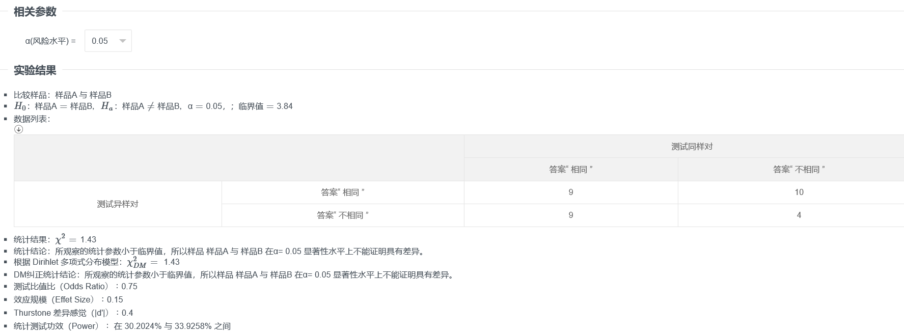 a.整體差異測試:A-非A檢驗、A-非A檢驗【含確定性標尺】、簡單差異測試、簡單差異測試【含確定性標尺】、三點測試、二三點測試